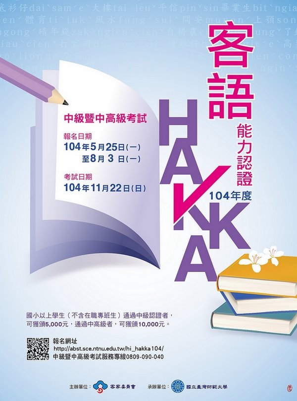 請全校師生踴躍參加104年度客語能力中級暨中高級認證