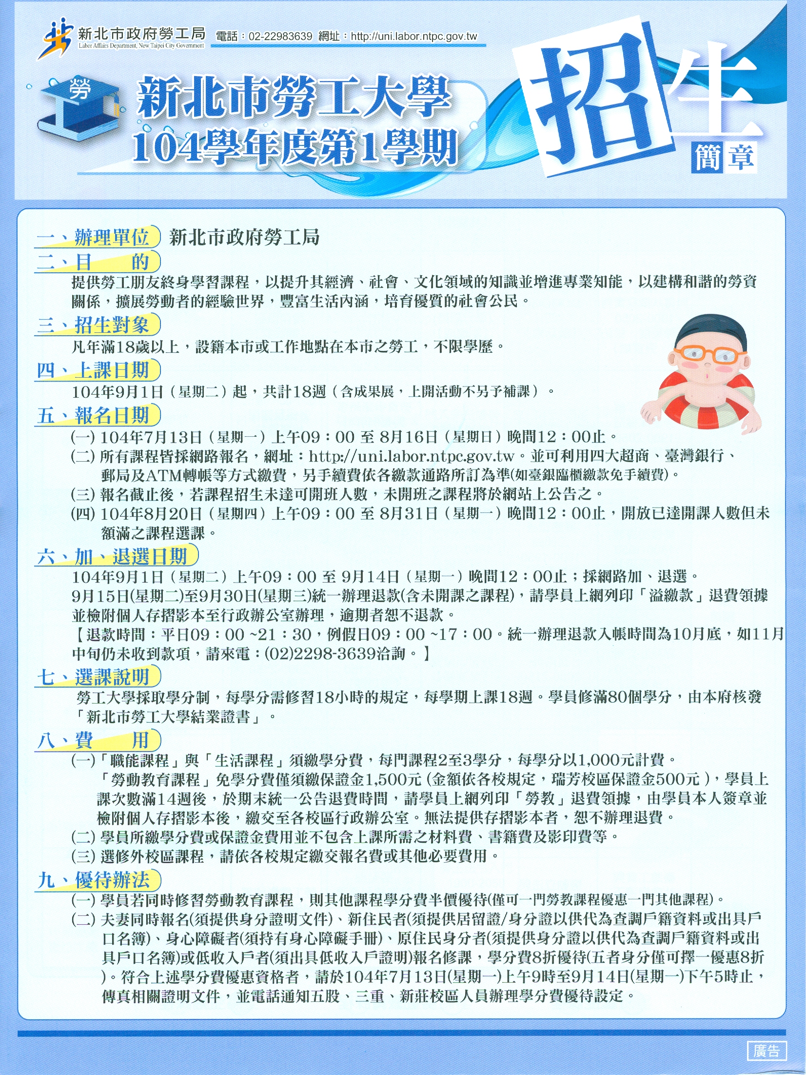 104-1 新北市勞工大學 土城校區 招生簡章