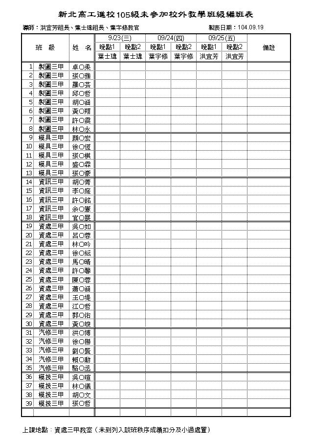 **公告進修學校高三未參加校外教學學生9/23~25在校上課編班及注意事項**