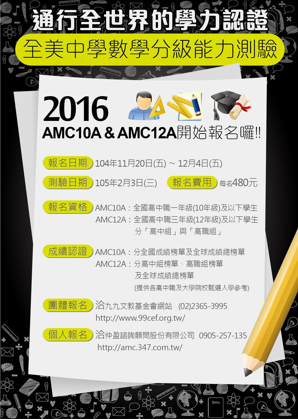 轉知美國數學協會(MMA)舉辦之美國數學競賽(AMC10A、12A)資訊轉知校內同學及貴校家長會。