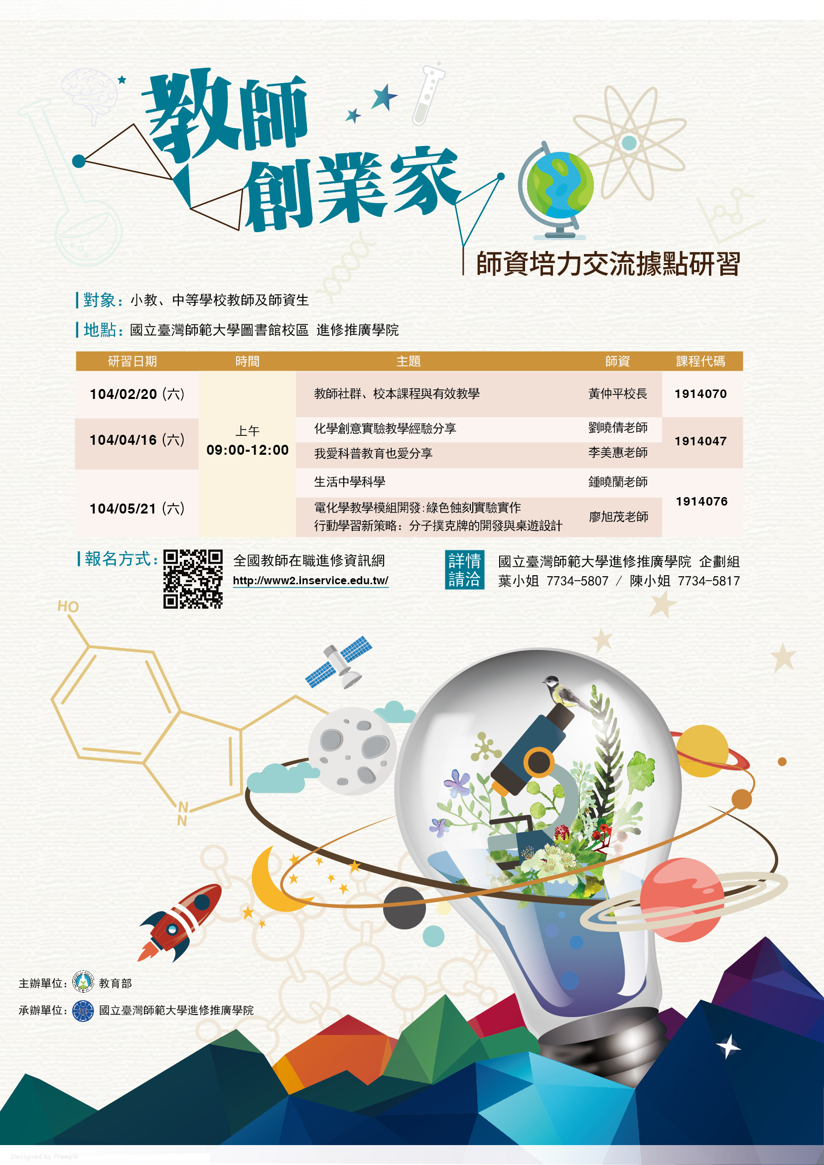 轉知國立臺灣師大進修推廣學院辦理教育部師資培力交流據點研習,敬請貴局(處、校)惠予公告並鼓勵教職員生報名參加,且准予出席之人員公假登記,請查照。