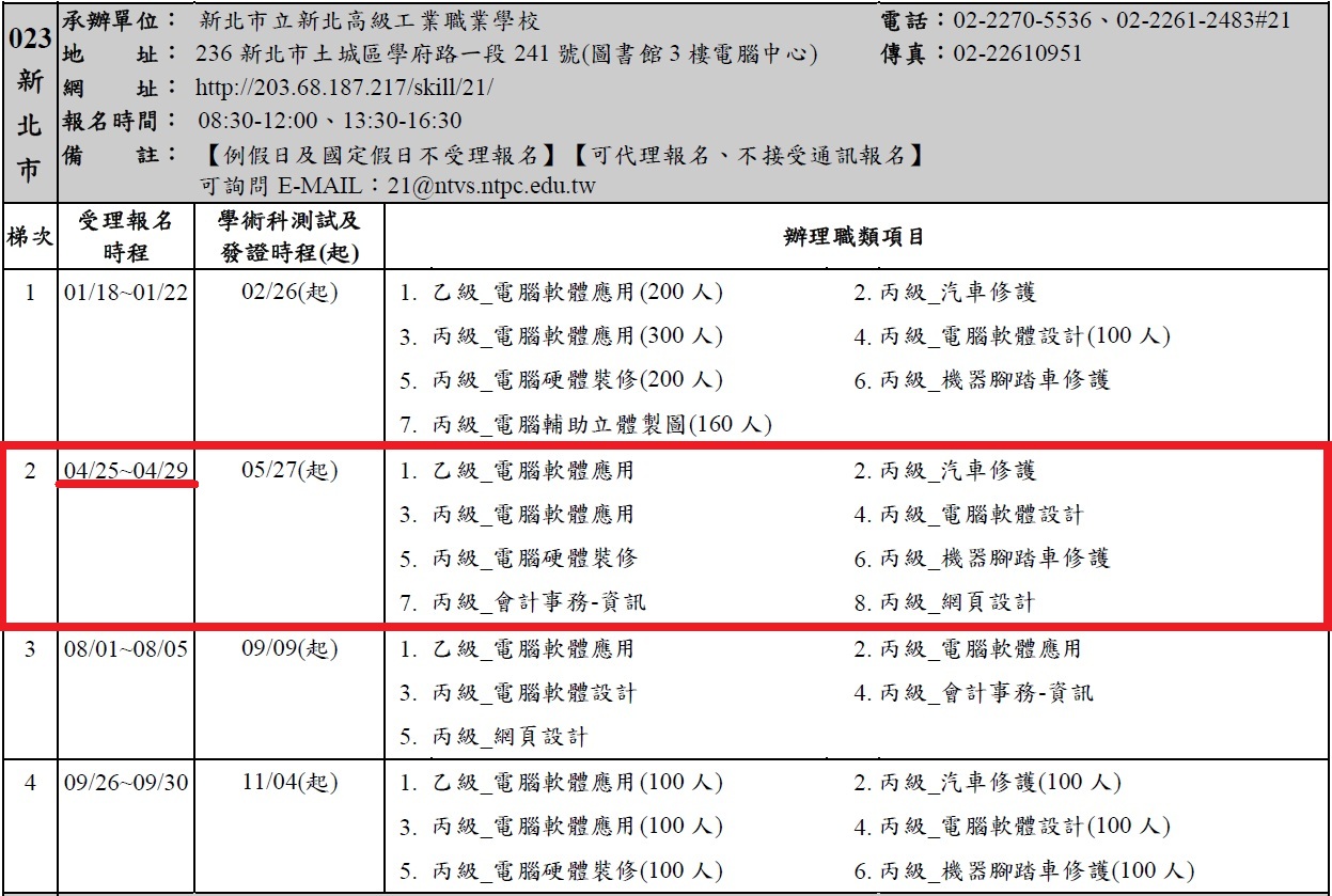 新北市立新北高級工業職業學校110學年度第2學期第1至5次代理教師甄選簡章