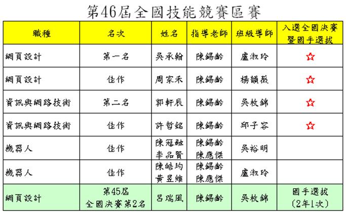 賀:資訊科第46屆全國技能競賽北區賽榮獲佳績