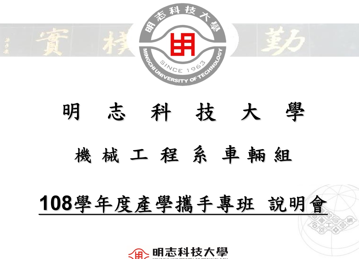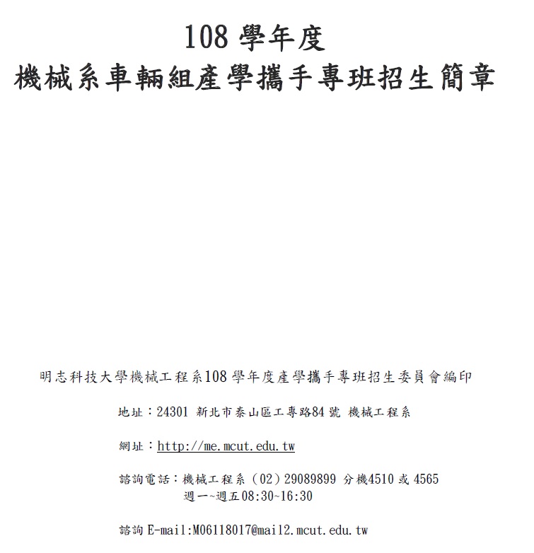 108學年度明志科技大學機械系車輛組產學攜手專班招生簡章