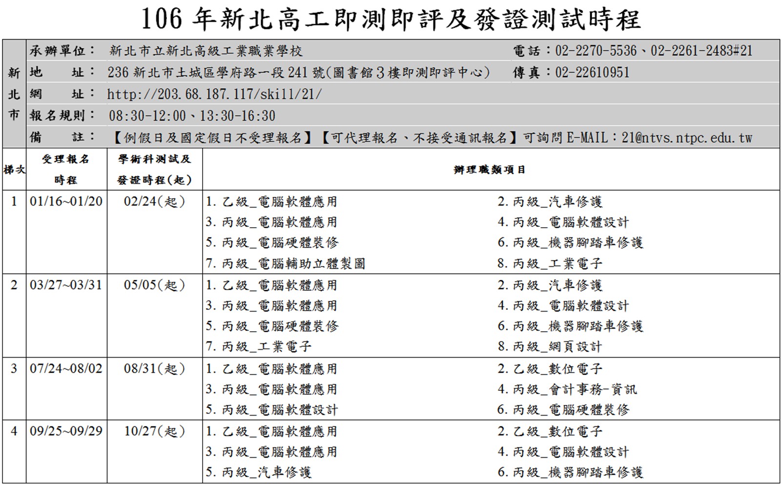 *****105學年度新北高工進修學校核定班續招榜單公告*****