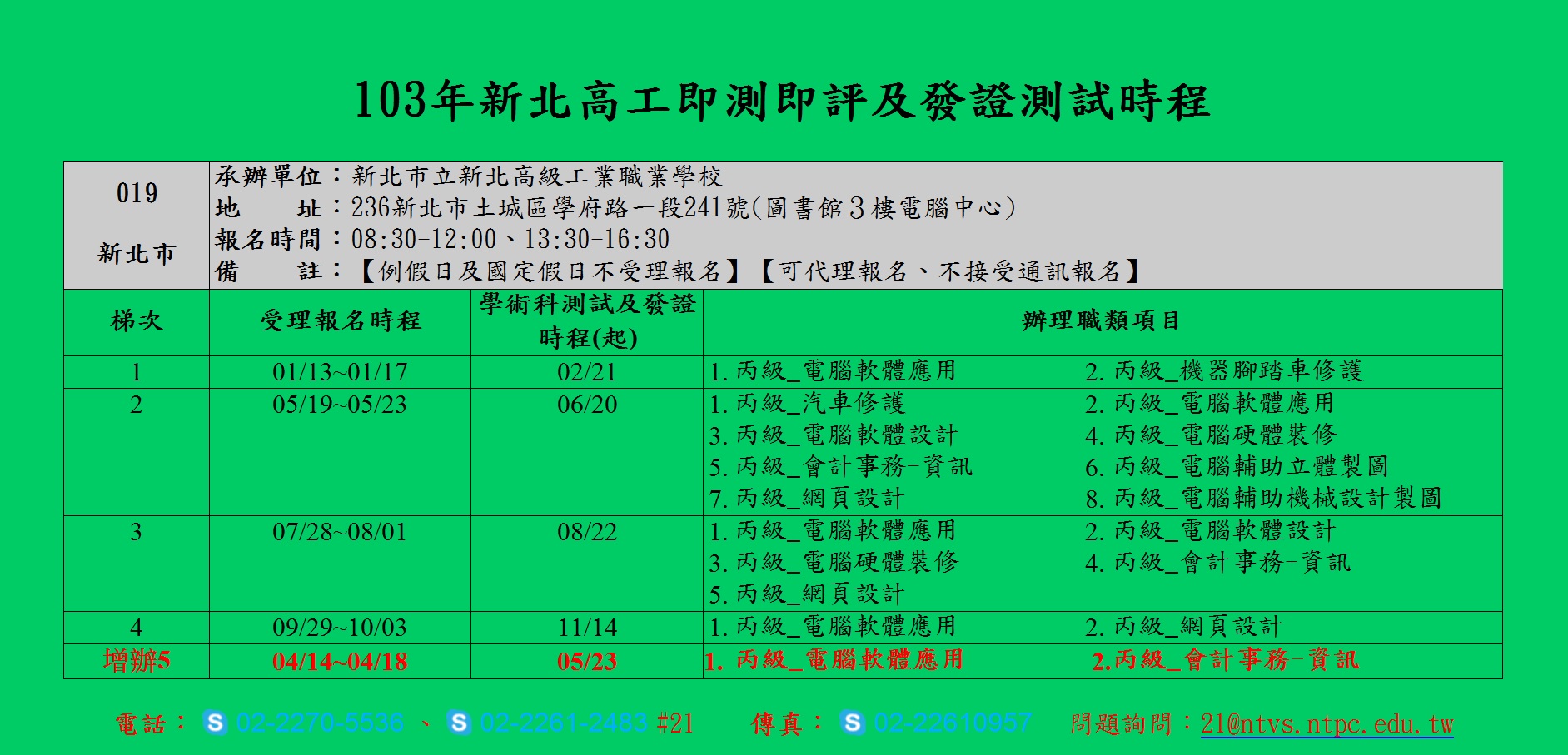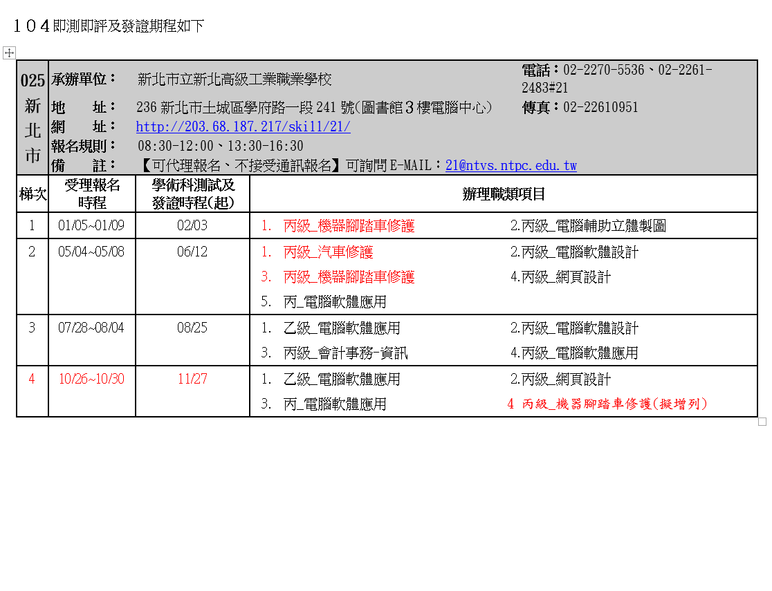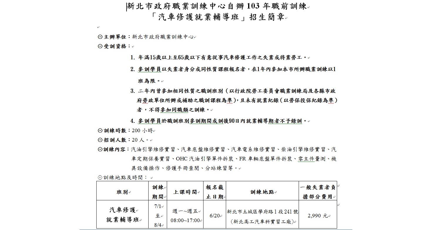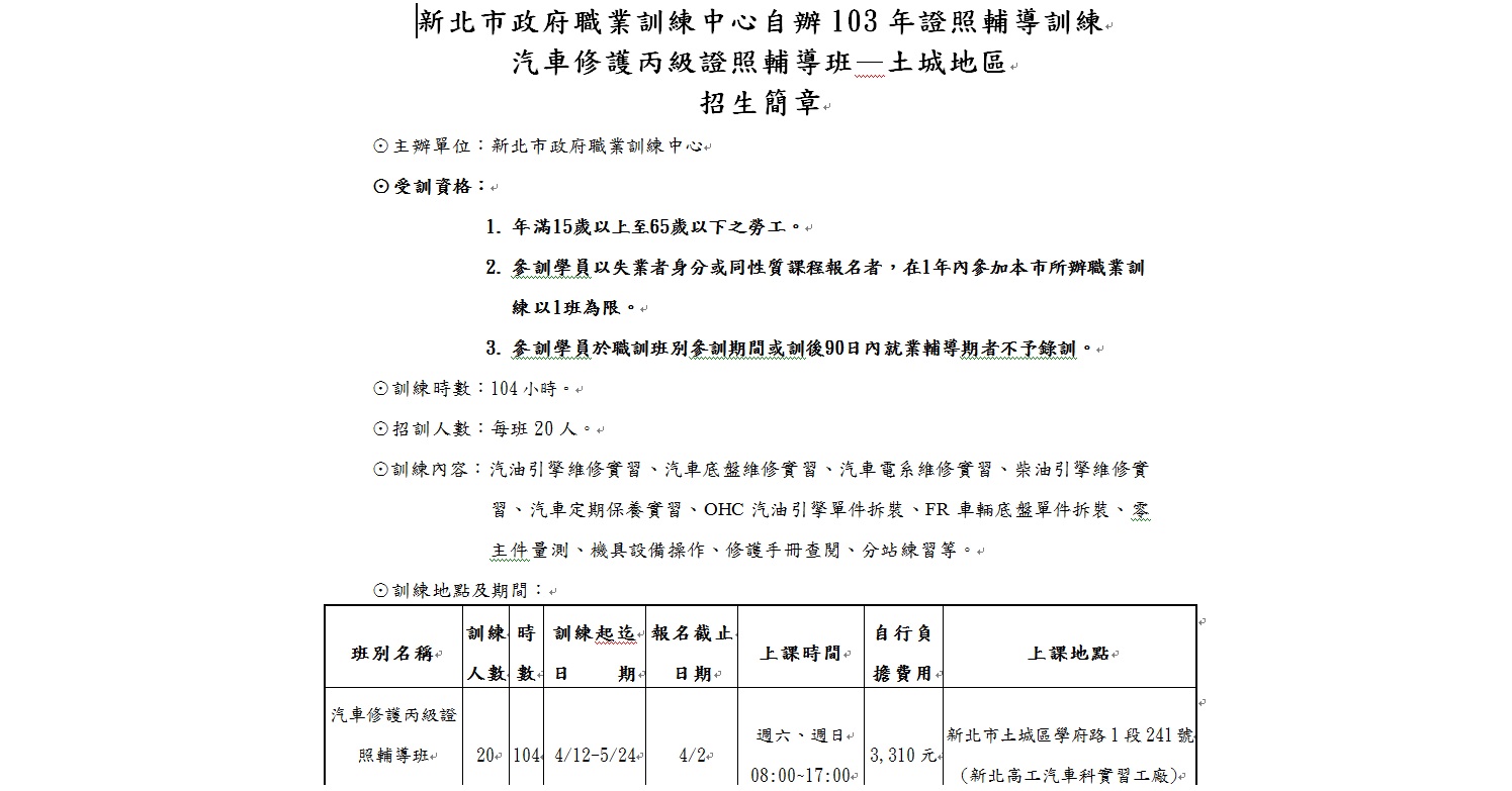 103年新北職訓中心機器腳踏車修護丙級證照輔導班-簡章及報名表0422